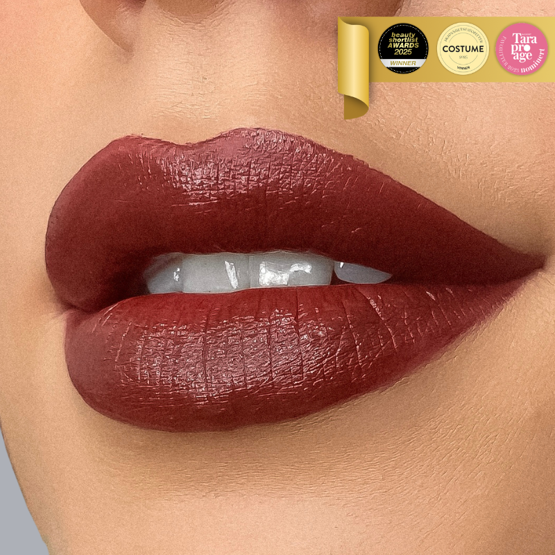 Velvet har en dyp, elegant nyanse med hint av plomme og brun. Den gir leppene et sofistikert og luksuriøst uttrykk – perfekt for høst, vinter og festlige anledninger.